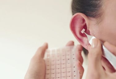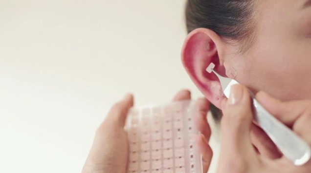 Estimulação de pontos na orelha para tratar dores, insônia, ansiedade, compulsões e desequilíbrios emocionais.